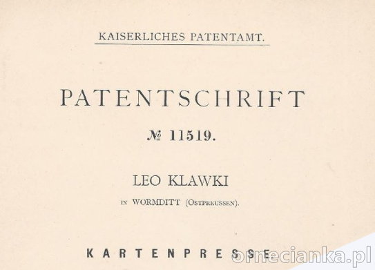 Leo Klawki był wynalazcą, ma zarejestrowany patent nr 11519 (Patentschrift) z roku 1880.