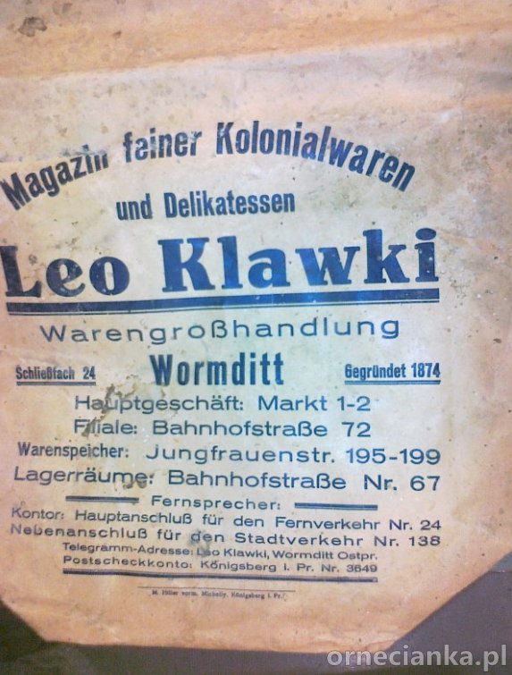 Telegramm-Adresse:Leo Klawki, Wormditt Ostpr.