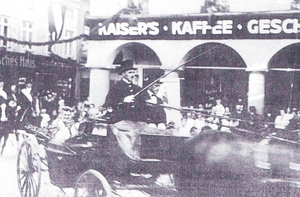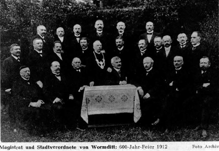 O godzinie 12 w ratuszu odbyło się wspólne posiedzenie miejskich władz i organizacji, w którym uczestniczyło wielu honorowych gości. Gdy chór skończył śpiewać, przemówił burmistrz Franz Majewski, autor tej kroniki, wygłaszając mowę okolicznościową o burzliwych dziejach miasta. Następnie prezydent rejencji, hrabia von Keyserlingk, udekorował zasłużonych obywateli Josefa Hofmanna i Leo Klawki orderem Korony, a urzędnika policji Behreho i robotnika Haftkiego ogólnym odznaczeniem honorowym.