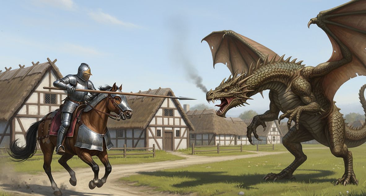 Kiedy tak rozmyślano – smok nagle poderwał się i gwałtownym skokiem rzucił się w kierunku rycerza. Ten jednak nie dał się zaskoczyć. Błyskawicznie nastawił swą długą kopię i ugodził smoka tak celnym ciosem, że ten raz jeszcze zawył przeraźliwie gwałtownie podciągnął pod siebie swój wielki ogon, wspiął się w górę i … jak gdyby chciał dokonać jeszcze jednego skoku – runął bezwładnie na ziemię. Olbrzymim jego cielskiem długo jeszcze targały konwulsje i śmiertelne drgawki. Nie zapowiadało to już jednak żadnej grozy, choć ludzie wcale jeszcze nie chcieli uwierzyć w to, co się tu przed chwilą stało i bardzo bojaźliwie przybliżali się do miejsca potyczki, śmierć tego niezrównanego olbrzyma i krwiopijcy – była niezwykle wielkim wydarzeniem w życiu wszystkich mieszkańców miasta i jego okolic. Nic tedy dziwnego, że bardzo tłumnie zebrali się wokół potwora i na głos podziwiali i wielkość smoka i męstwo rycerza. Trudno im było uwierzyć – jak człowiek ten mógł jednym ciosem zniszczyć istotę, której przez tyle lat nie mogli pokonać nawet najprzedniejsi mistrzowie oręża.