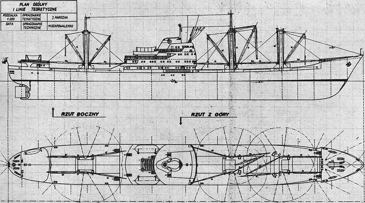 W wyniku przeprowadzenia dogłębnej analizy i wzięcia pod uwagę rodzaj i ilość przewożonych materiałów a także specyfikę portów, do których statki te miały zawijać a więc i warunków klimatycznych, opracowano model B 59 do przewożenia drobnicy o długości ponad 114 metrów. Konstruktorzy z Centralnego Biura Konstrukcji Okrętowych Nr 1 w Gdańsku pod kierunkiem inżyniera Władysława Grela stworzyli otwarty ochronnopokładowiec jednośrubowy z siłownią na śródokręciu o 5 ładowniach. Statek była konstrukcją spawaną z niewielką ilością konstrukcji nitowanej. Zastosowano podwójne dno z pełnymi dennikami. Statek ma 7 grodzi wodoszczelnych a w ładowniach i między pokładach w płaszczyźnie symetrii statku wykonano niewodoszczelne grodzic wzdłużne.